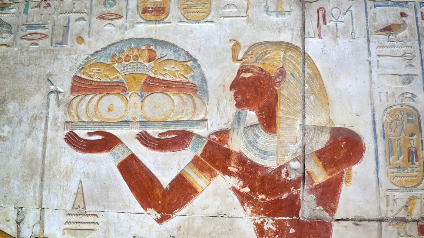 Ancient Egyptian texts mention more than 30 kinds of bread, which means there was a lot of baking going on. From tomb scenes, we find that they seemed to bake using cone-shaped, mud-brick bowls called bedjas that they would pre-heat over fire. Once hot, workers would fill the bedja with batter and then place another hot bedja on top, creating a mini oven.