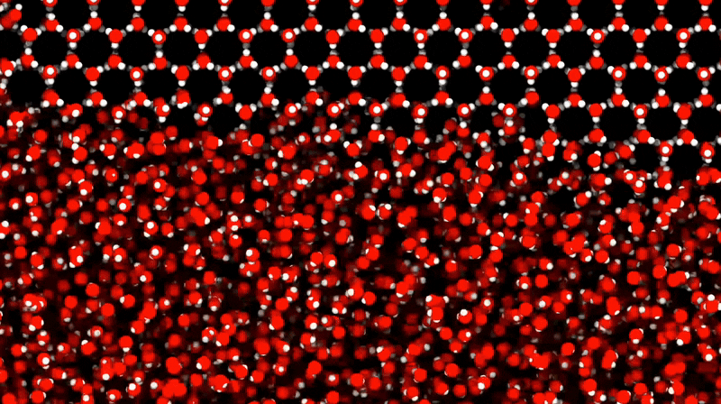 How cool is this 3D simulation of water molecules turning into ice crystals!